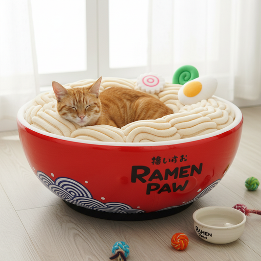 Ramen Bowl Cat Bed - Large Novelty Pet Bed (Red)